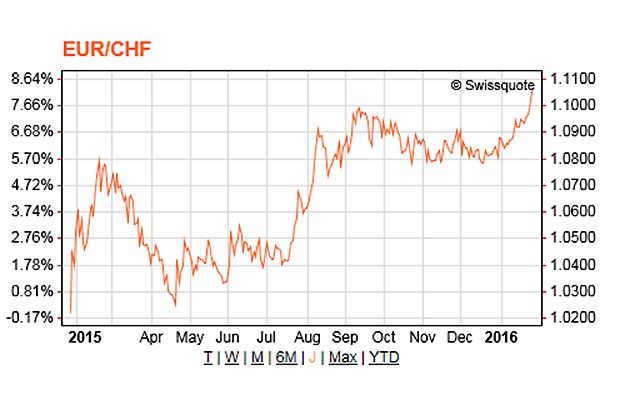 Am Donnerstag in der zweiten Tageshälfte kletterte die Schweizer gegenüber der Gemeinschaftswährung jedoch wieder auf 1,105 Franken. Bereits seit vergangen Montag schwächt sich der Franken tendenziell gegenüber dem Euro ab.
