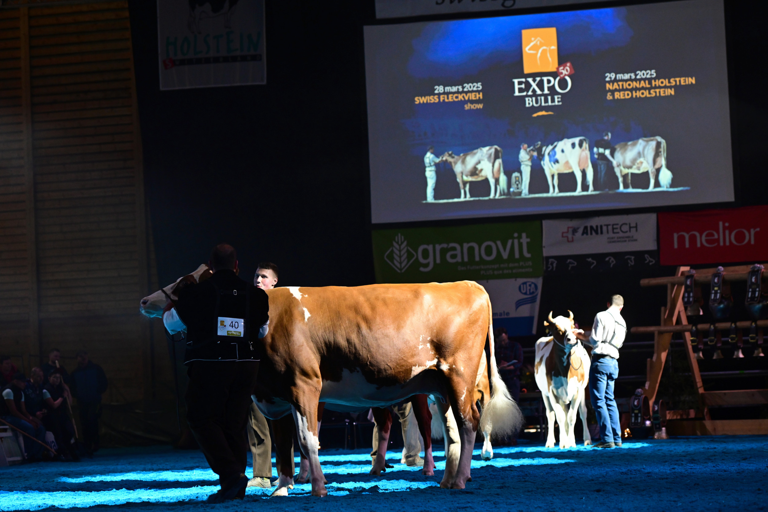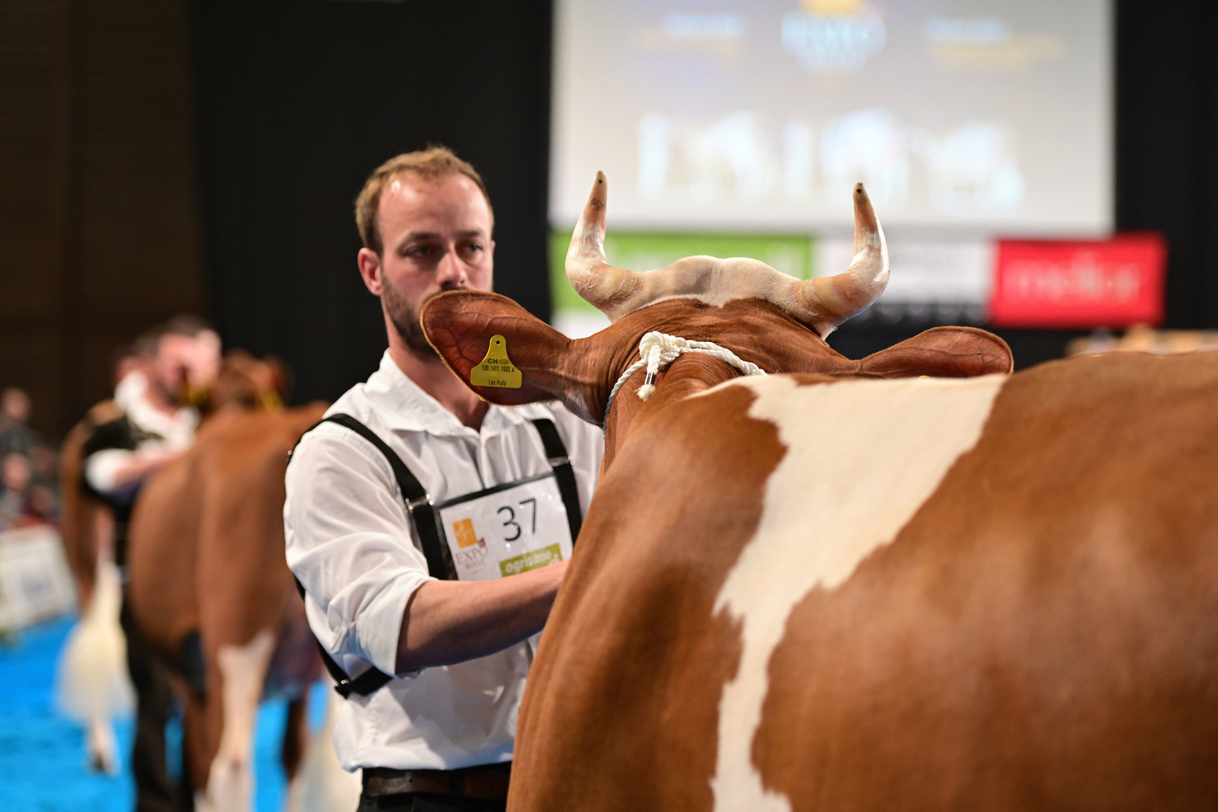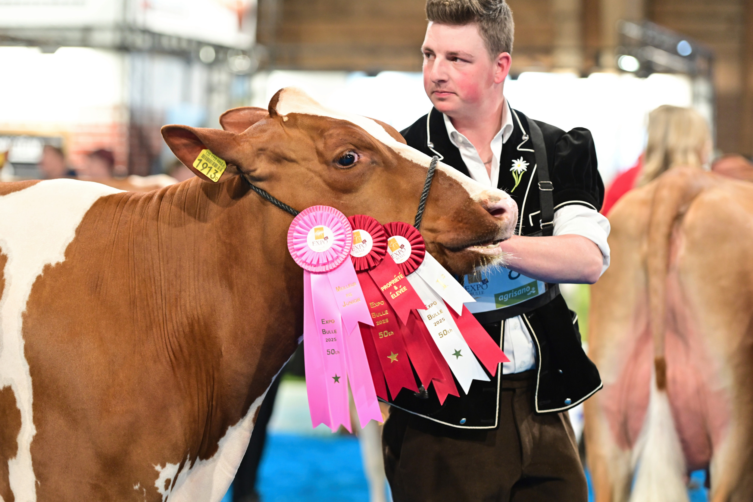 An der 50. Expo Bulle machte eine eindrückliche Rasse Swiss Fleckvieh den Auftakt. Richter Bruno Beyeler aus Plaffeien FR war voll des Lobes über die Qualität der ausgestellten Tiere. Seine Siegerinnen hätten ihn vom ersten Moment in seinen Bann gezogen.