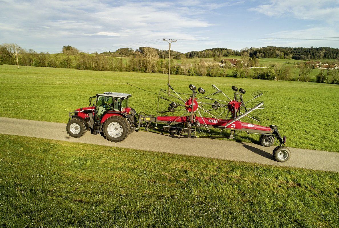 Ein Deichselschwenkkopf mit Unterlenkeranhängung sorgt für die Wendigkeit, die leistungsfähige Druckluft-Bremsanlage für mehr Sicherheit im Strassenverkehr. «Weitere Details wie eine automatisch klappbares Schwadtuch und die serienmässige Folgesteuerung erhöhen den Bedienkomfort», schreibt Fella.
