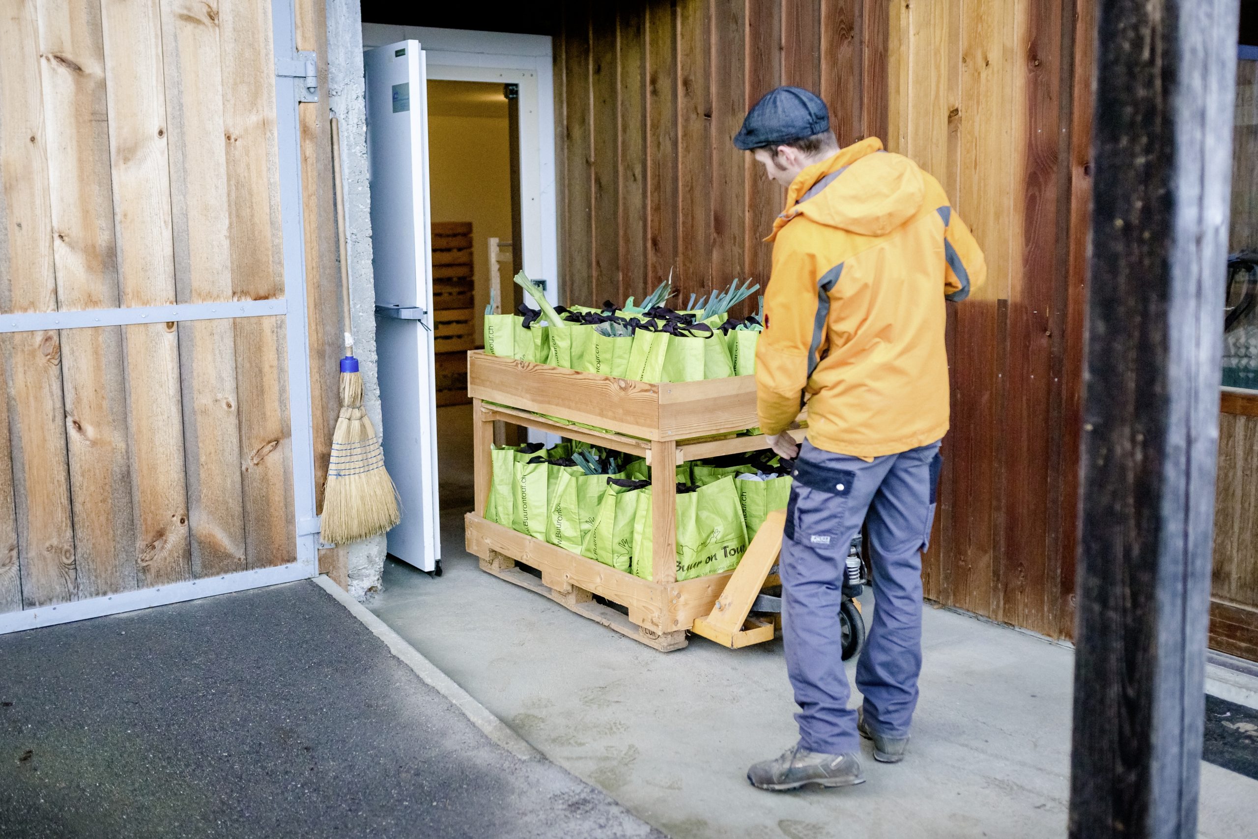 «Bis kurz nach dem Mittag treffen alle Produkte bei uns ein und wir stellen die Taschen zusammen. Sobald sie fertig sind, bringe ich sie zur Zustellstelle der Post», sagt André Ziegler, Gründer von Buur on Tour. «Und am Freitagmorgen liefert die Post die Hofprodukte aus.»