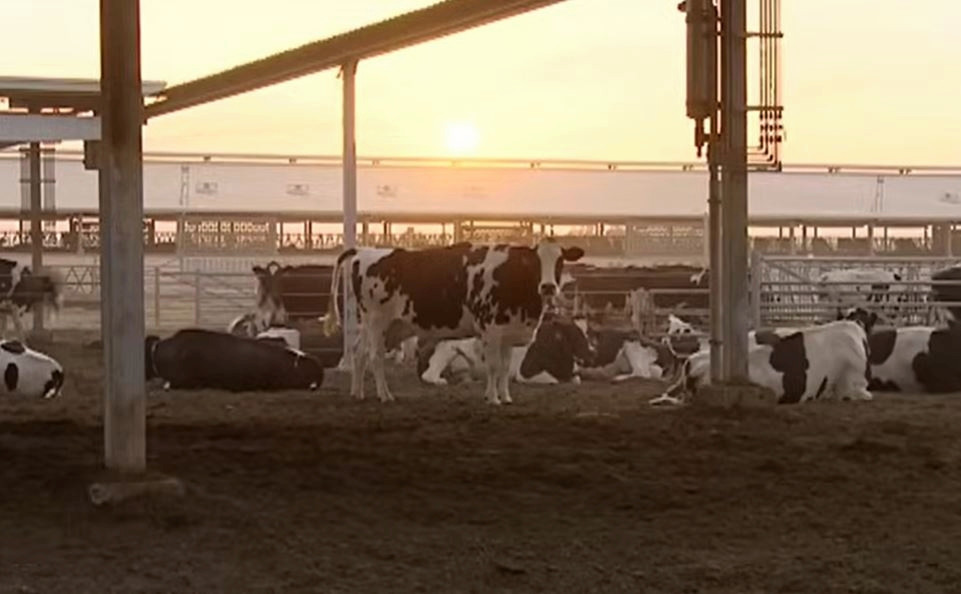 Die Kühe werden viermal pro Tag in Melkrobotern gemolken. Die durchschnittliche Milchleistung beträgt 40kg pro Tag. Insgesamt sind das bis zu 800’000kg Milch pro Tag. Pro Tag werden rund 65 Kälber geboren.