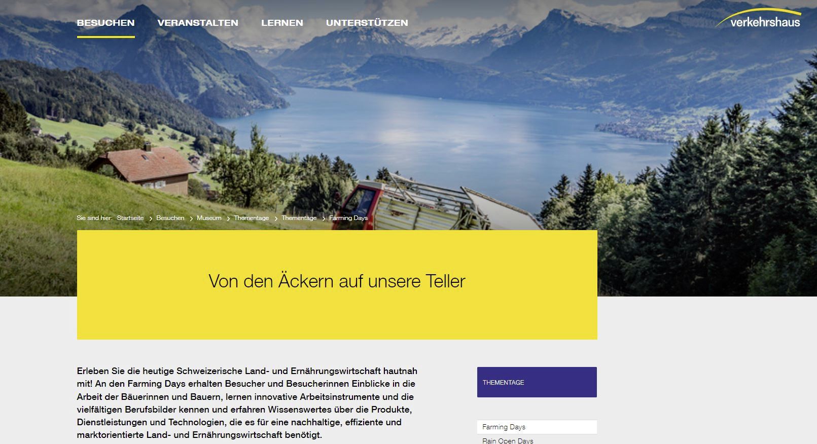 Die Farming Days 2022 sind Teil einer Reihe von Thementagen im Verkehrshaus der Schweiz. Die Farming Days sollen künftig jährlich durchgeführt werden. Weitere Informationen gibt es hier