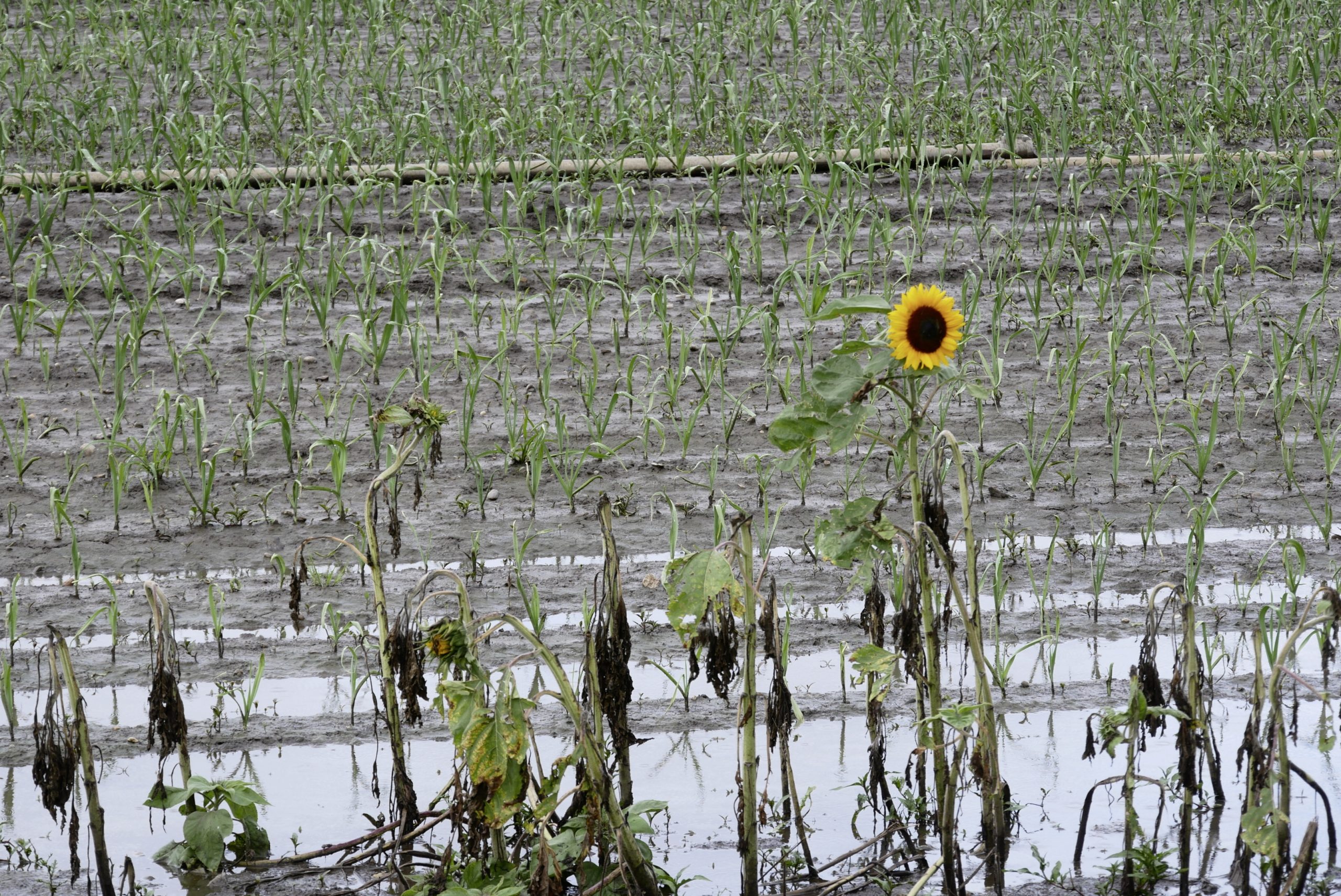 Das Hochwasser und der Starkregen haben die Felder überschwemmt. Parzellen mit reifem Getreide wurden durch das Wasser geflutet oder durch Starkregen zu Boden gedrückt. Betroffen sind unter anderem auch Spargel-, Mais-, Erdbeer- oder Kartoffelfelder und Grünland.