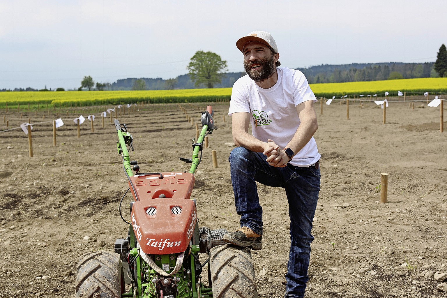 Marcel Villiger ist gelernter Landwirt und Zimmermann. In Fenkrieden AG hat er derzeit viel zu tun, denn er muss rund 250 Gärten bewirtschaften. Die Kunden in der ganzen Schweiz warten derzeit auf ihre Rüebli, den Salat und die Zwiebeln – oder schon ungeduldig darauf, «ihren» Garten für die Sommersaison zu bestellen. Das tun sie aber nicht in Gummistiefeln oder Wanderschuhen in Fenkrieden, sondern online am PC. Möglich macht es das Start-up MyFeld, das im Oktober 2020 gegründet wurde. Das Konzept: Online-Gärtner kaufen ihren Garten, 16 Quadratmeter gross, und bepflanzen ihn über die Website, wobei sie eine Auswahl von über 30 Gemüsesorten, Beeren und Kräutern haben. Der Konfigurator warnt die Kunden, wenn etwa zwei Gemüsearten nicht verträglich sind oder es für Kartoffeln zwei Quadratmeter braucht. Der Feldkonfigurator in Fenkrieden wiederum berechnet, wann das Gemüse reif ist und verschickt werden kann.