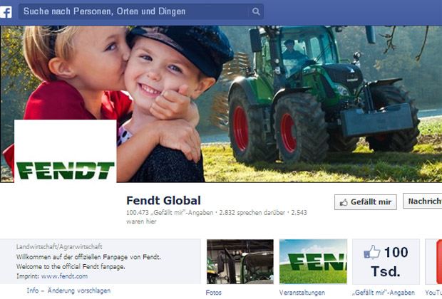 Der Allgäuer Traktorenhersteller Fendt bietet den Landwirten nicht nur modernste Technik, sondern kann seine Freunde auch im Internet mobilisieren. Das beweist die aktuelle Zahl von 100'000 Fans, die jetzt im sozialen Netzwerk Facebook mit dem Unternehmen befreundet sind.
