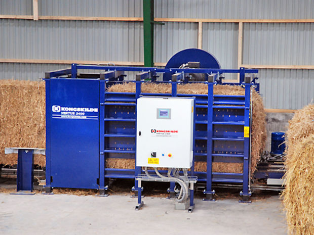 Zur Agritechnica 2011 präsentiert Kongskilde seinen neuen Gross-ballentrockner Ventus 2400 – eine Neuentwicklung, mit der Grossballen aus Stroh mittels Heissluft getrocknet werden können. Der Trocknungs-ablauf geht so. Zu trocknende Grossballen werden auf einem Kettenförderer platziert, der sie automatisch in die Trockenkammer befördert, wo sie einer nach dem anderen getrocknet werden.