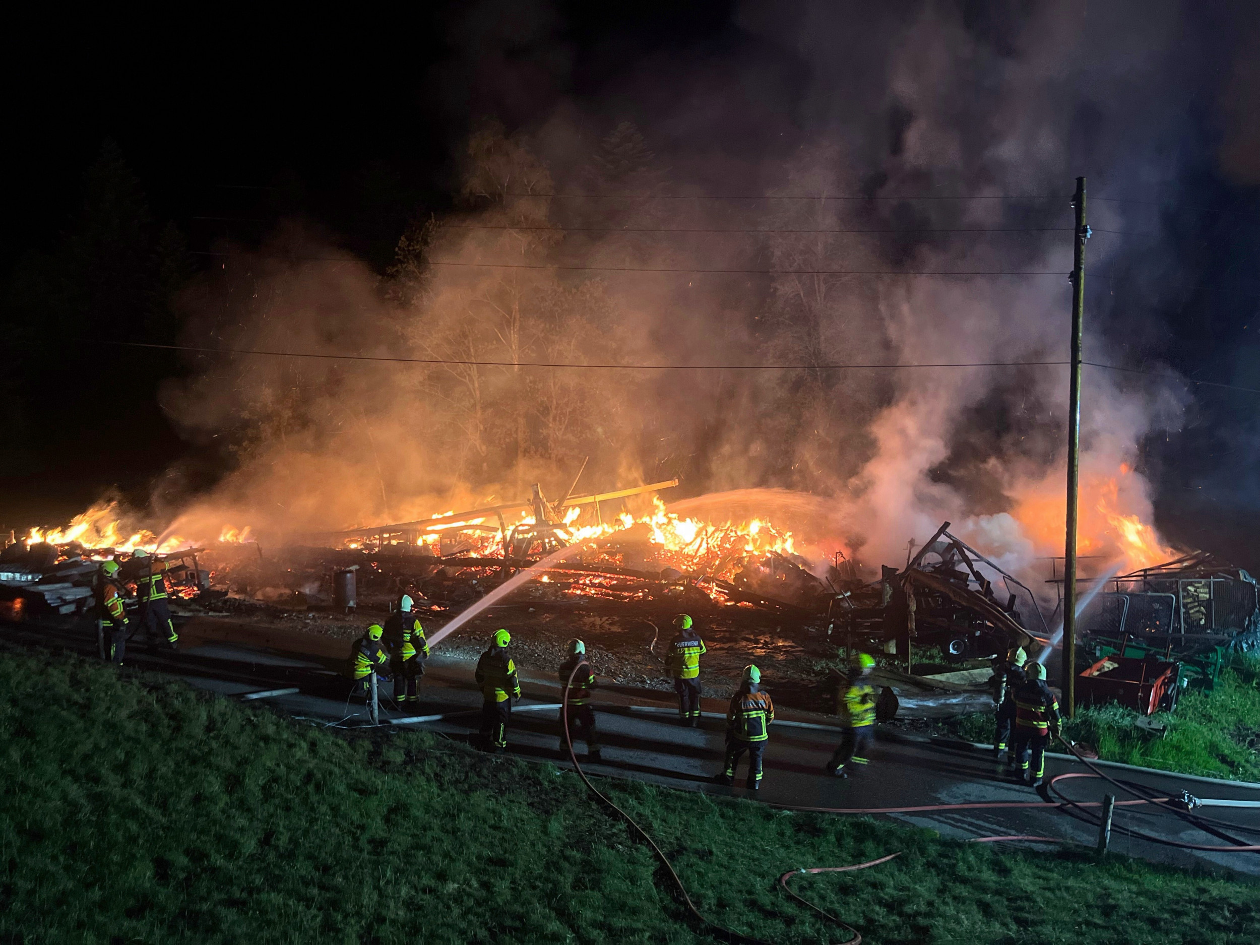 Der Brand wurde der Kantonalen Notrufzentrale St.Gallen gegen 1.20 Uhr gemeldet. Als die Einsatzkräfte am Brandort im Bereich Rumpf eintrafen, stand die Scheune bereits in Vollbrand.