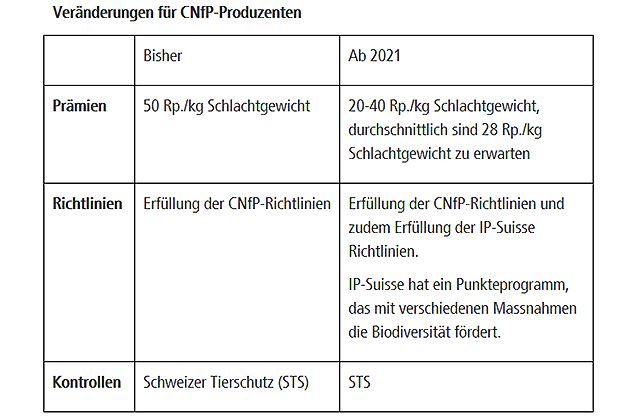 Ab 2021 übernimmt IP-Suisse die Verantwortung und die Kontrolle beim Label Coop Naturafarm Schweinefleisch. Die Produzenten müssen neu zusätzlich Biodiversitätsbeiträge erfüllen, erhalten aber nur noch halb so viel Zuschläge für den Mehraufwand der Labelproduktion.