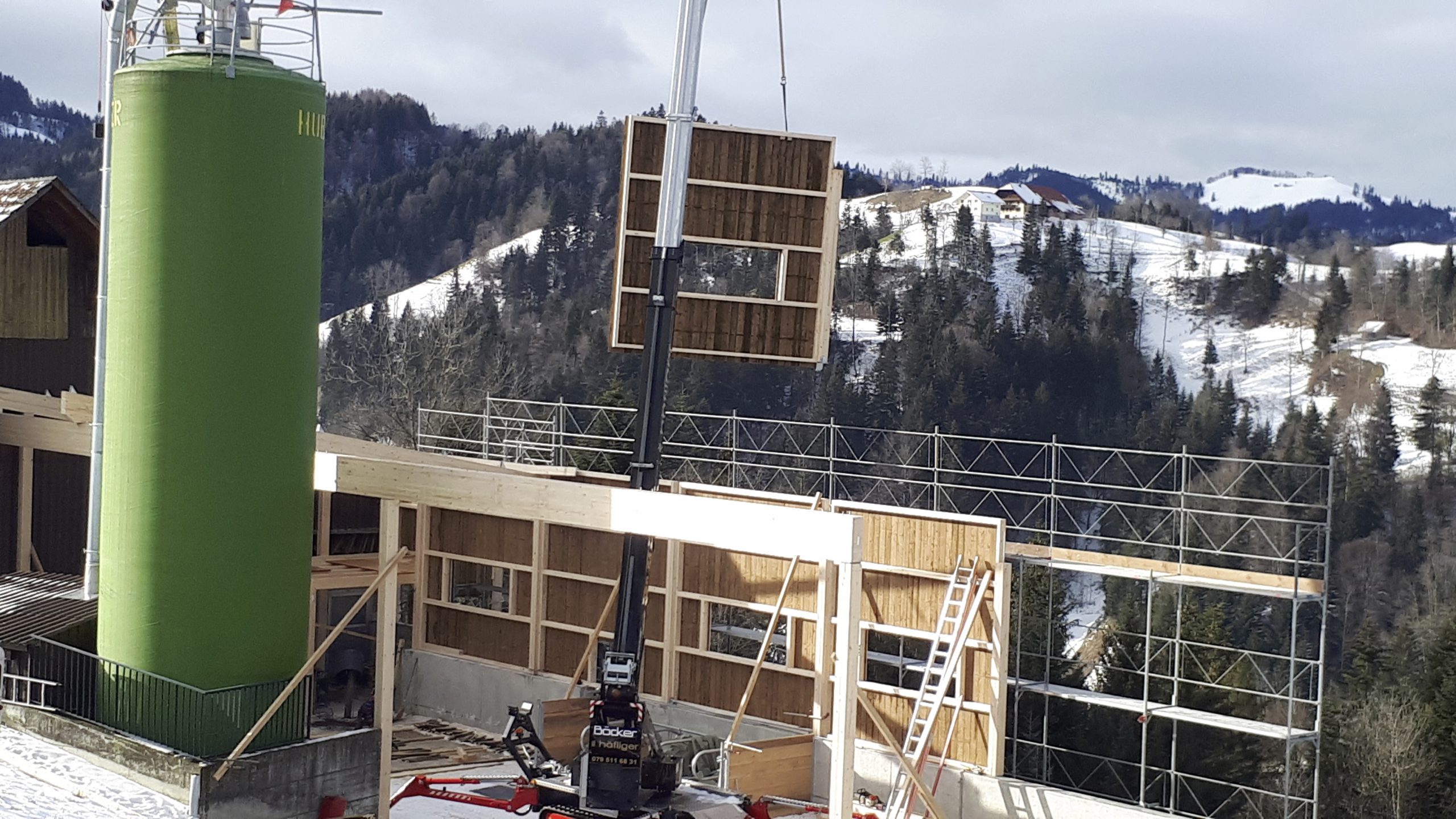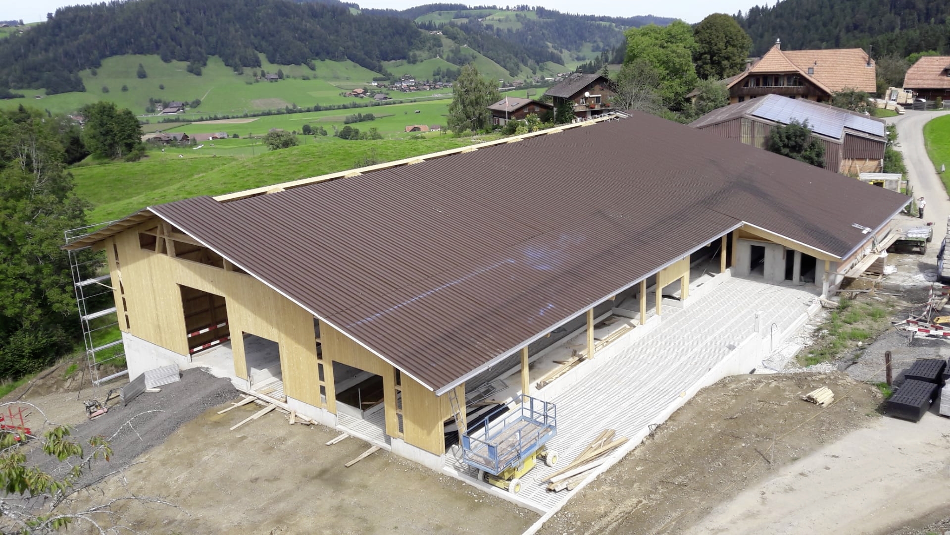 Unser Siegerbild der Woche wurde von der Betriebsgemeinschaft Angelo und Kevin Fasel aus Heitenried FR zugesendet. «Wenn alles glatt läuft, ist der Milchviehstall für 60 Kühe im Frühling einzugsbereit», schreiben die Fotografen. Glück in den Stall wünschen wir.