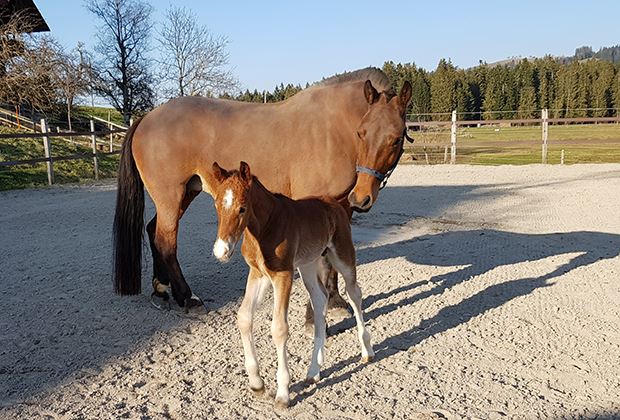 Während die Abfohlsaison auf manchen Betrieben noch in vollem Gange ist, können die früh geborenen Fohlen bei schönem und trockenem Wetter bereits die Weide erkunden.