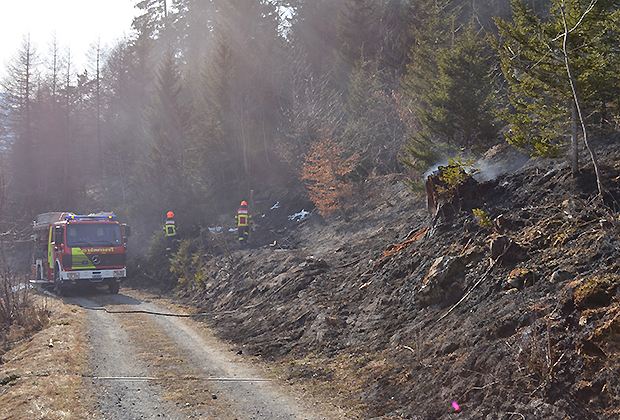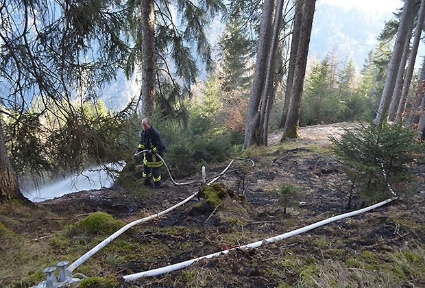 Nur rund 24 Stunden später ist in einem Waldstück zwischen Maladers und Calfreisen ein Waldstück in Brand geraten. Auf rund 1'100 Metern über Meer brannte der Waldboden und Jungwald auf einer Fläche von 120 Meter Breite und 80 Meter Höhe an verschiedenen Orten. Grössere Bäume wurden zum Glück nicht in Mitleidenschaft gezogen. Die Einsatzkräfte konnten durch ihr rasches Eingreifen ein Ausbreiten des Brandes verhindern. Als Brandursache wird das Wegwerfen von Raucherware vermutet. Der Sachschaden beträgt gemäss Angaben der Polizei einige hundert Franken.