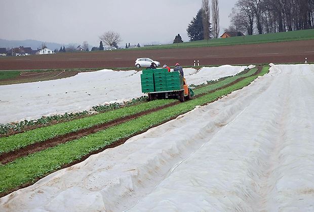 Auch in der Schweiz ist die Angst, dass nach der Ernte Plastik auf dem Feld liegenbleibt, unberechtigt. "Sie bestehen entweder aus organischem Material und bauen sich natürlich von selbst ab oder werden aufgesammelt", sagt Kaspar Widmer von der Firma gvz-rossat ag/sa, die den Landwirten die Folien verkauft. Kein Bauer wolle Plastikreste auf seinem Acker.