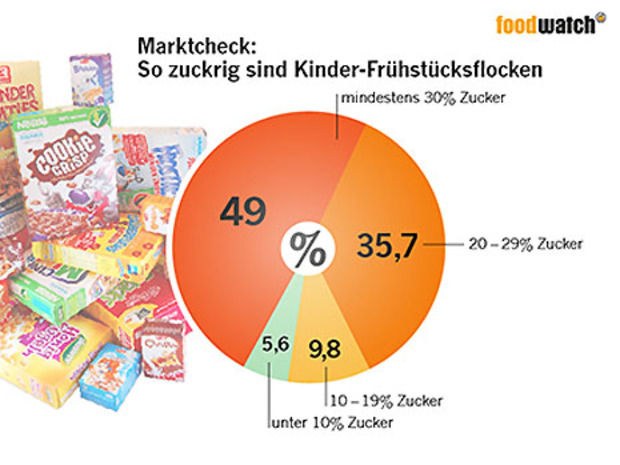 Problematisch sei, dass viele Hersteller von Frühstückscerealien mit Spielzeugbeigaben und bunten Verpackungen gezielt junge Konsumenten ansprechen würden. Foodwatch fordert deshalb, die Obergrenze für den Zuckergehalt in Frühstücksflocken gesetzlich festzulegen.