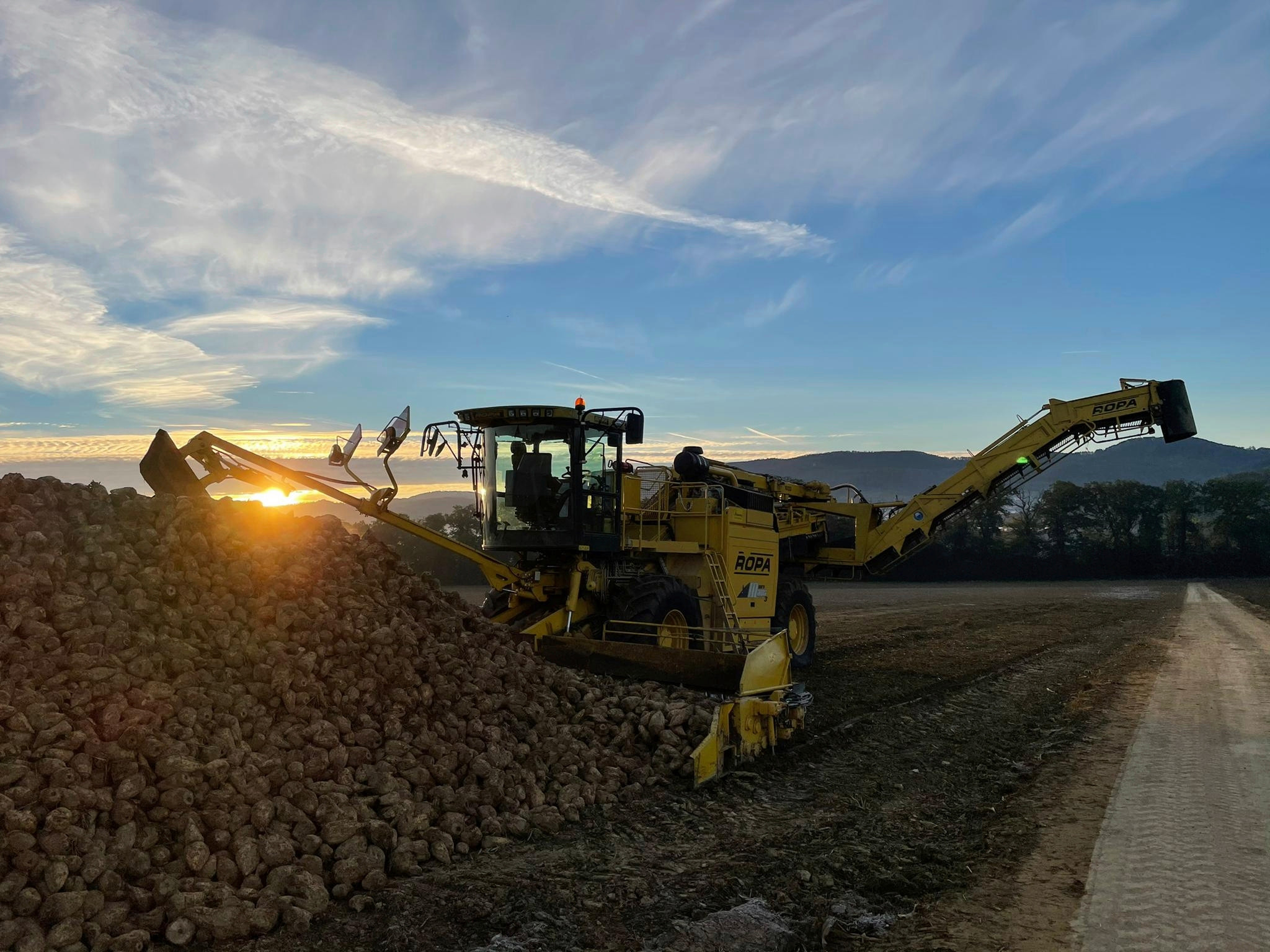 In der Schweiz sind Zuckerrüben eine wichtige Kulturpflanze für die Zuckerproduktion. Die Ernte beginnt je nach Wetter und Region meist ab Oktober. Landwirtinnen und Landwirte setzen auf moderne Maschinen, um die Rüben effizient aus dem Feld zu holen.