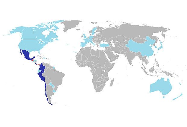 Nur Zucker soll von dem Freihandelsabkommen ausgeschlossen bleiben. Der genaue Termin der Inkraftsetzung des Abkommens hängt von der Ratifizierung in den Landesparlamenten ab. Die Präsidentin Costa Ricas, Laura Chinchilla, hat ihrerseits in Cartagena einen Fahrplan zum vollen Eintritt des zentralamerikanischen Staates in die Allianz bis 2015 unterzeichnet.