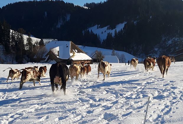 Für viel Begeisterung hat auch die Aufnahme von Fabian Stuber aus Ueberstorf FR gesorgt. Er hat eine Eringer-Kuh im Schnee bei schönster Sonnenuntergangsstimmung toll ins Bild gesetzt.