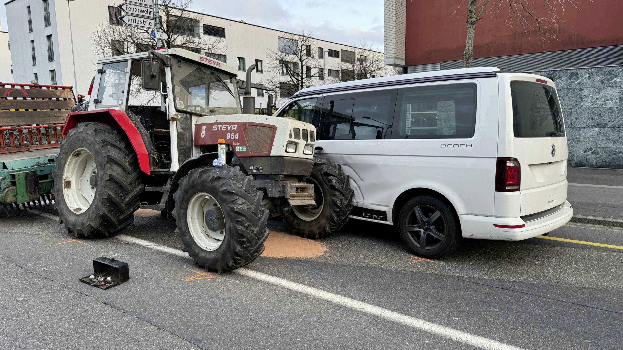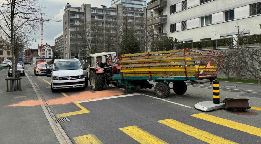 Gemäss Angaben der Polizei war ein 46-Jähriger mit einem Traktor und angehängten Ladenwagen gegen 16.30 Uhr auf der Göblistrasse unterwegs. Aus noch unbekannten Gründen löste sich während der Fahrt das Frontgewicht.