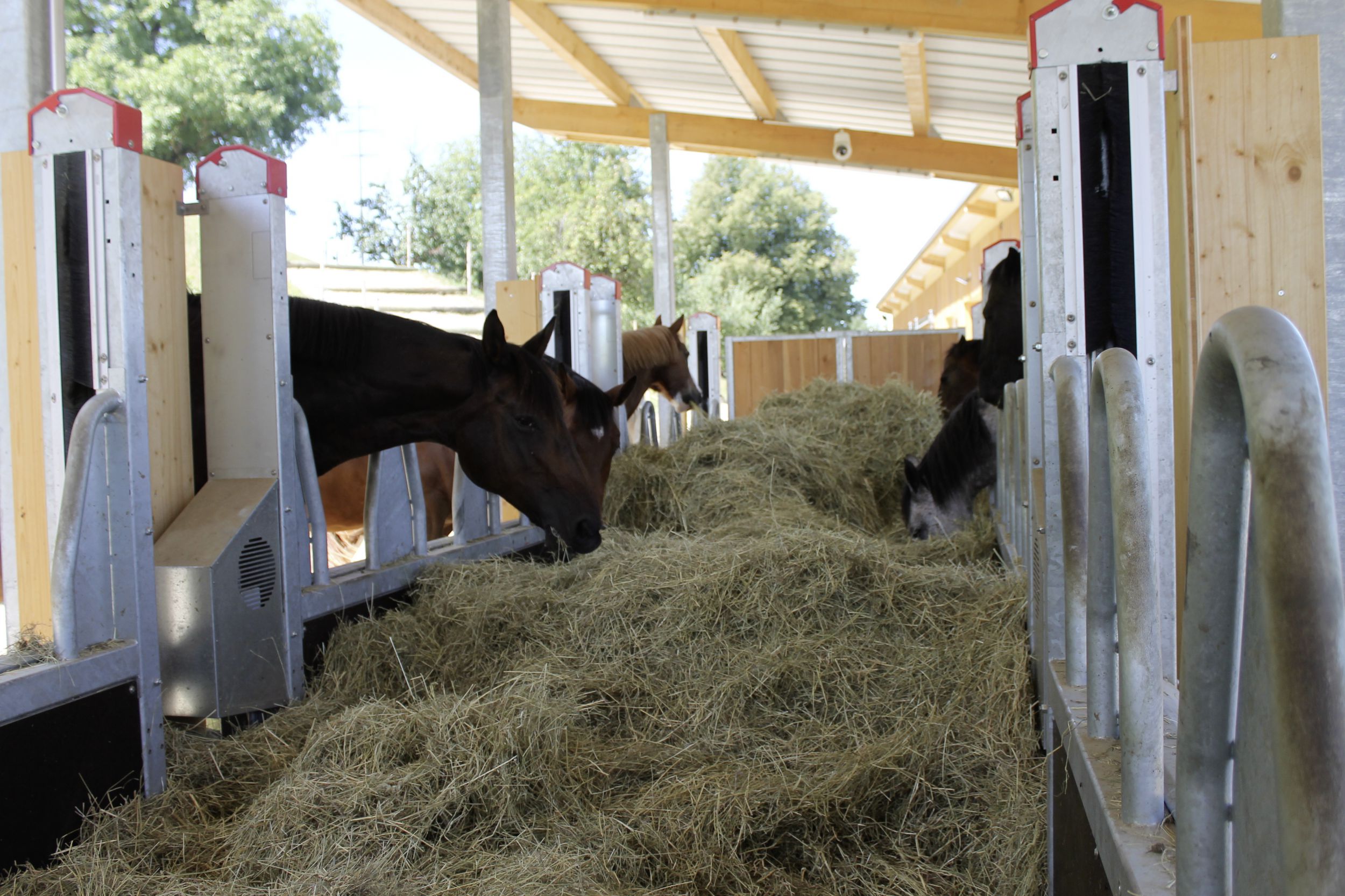 Das Futter verweilt beim Pferd fast zwei Tage im Dickdarm und es braucht kontinuierlich Nachschub. Pferde sollten deswegen über den Tag verteilt, das heisst in Intervallen Futter aufnehmen können: die Fresspausen sollten nicht länger als drei bis fünf Stunden dauern. Fütterungsspezialisten rechnen mit mindestens 1,5 kg Trockensubstanz (TS) Raufutter pro 100 kg Körpergewicht, das sind bei einem 600 kg schweren Pferd mindestens 9 kg TS entsprechend etwa 10 kg frisches Heu.