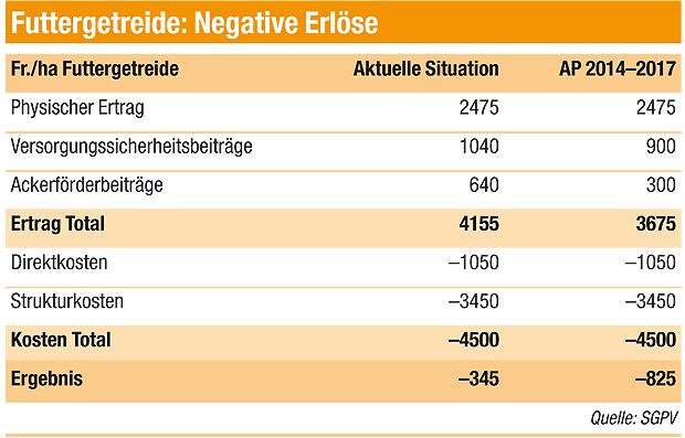 Die ungenügende Wirtschaftlichkeit beim Futtergetreide wirkt sich seit Jahren auf die Anbauflächen aus. Diese sinken seit Jahren stetig. Die Flächenabnahme in den vergangenen 23 Jahren beträgt 40 Prozent.