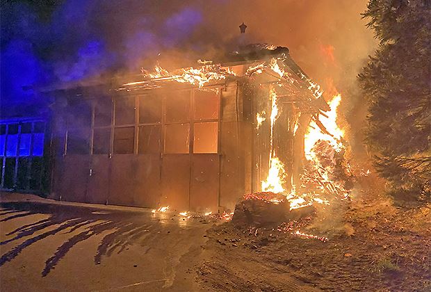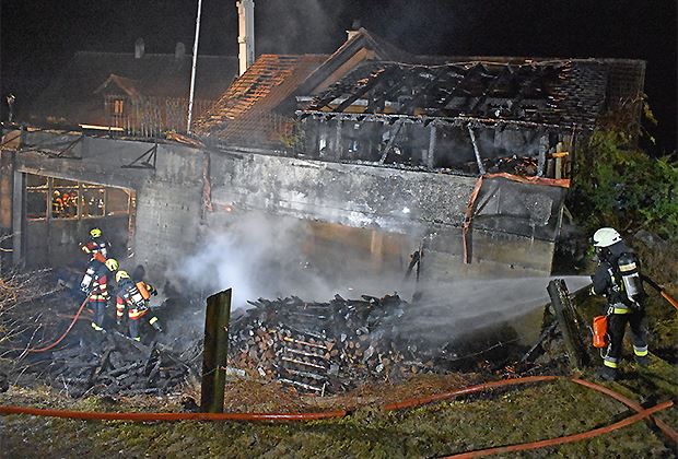 Die Garage ist hinegen vollständig niedergebrannt. Darin befanden sich ein Wohnwagen und ein Wohnmobil. Menschen und Tiere wurden nicht verletzt. Die Brandursache ist noch unbekannt. Zur Höhe des Sachschadens wurde keine Angabe gemacht.