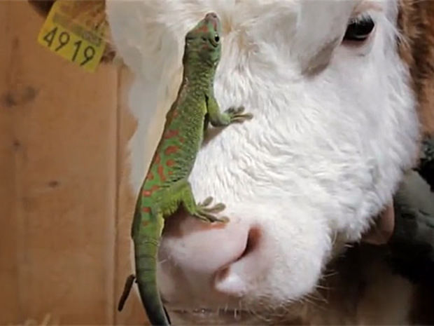 Emmentaler Switzerland will mit dem eidechsenähnlichen Gecko ein Mittel gefunden haben, der Fliegenplage auf den Kuhweiden Herr zu werden. Das Prinzip sei denkbar einfach, wie dem ungläubigen Zuschauer in einem Werbevideo erklärt wird: Ein Gecko fresse jeden Tag ungefähr 20 Fliegen. Mit einem dieser gefrässigen Tierchen auf dem Rücken, so der Käseproduzent, sei die Kuh die lästigen Schmeissfliegen für immer los.
