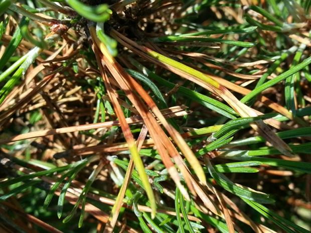 Zum ersten Mal ist in der Schweiz die Rotbandkrankheit in einem Wald entdeckt worden. Betroffen von der gefährlichen Pilzkrankheit sind Waldföhren auf einem Gebiet von zwei Hektaren beim Autobahnanschluss der A13 in Thusis Süd im bündnerischen Domleschg.