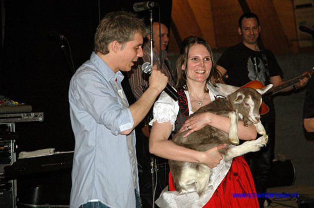 Sven Baumgartner, Geschäftsführer des Vereins Ziegenfreunde, und Andrea Hug: Die Spannung steigt vor der Bekanntgabe der Wahl.