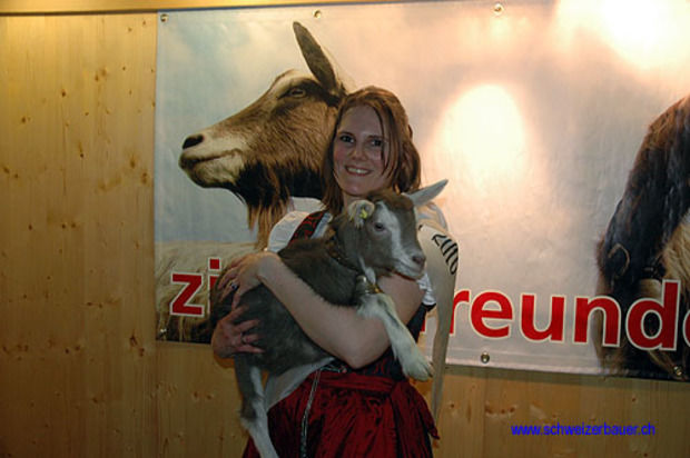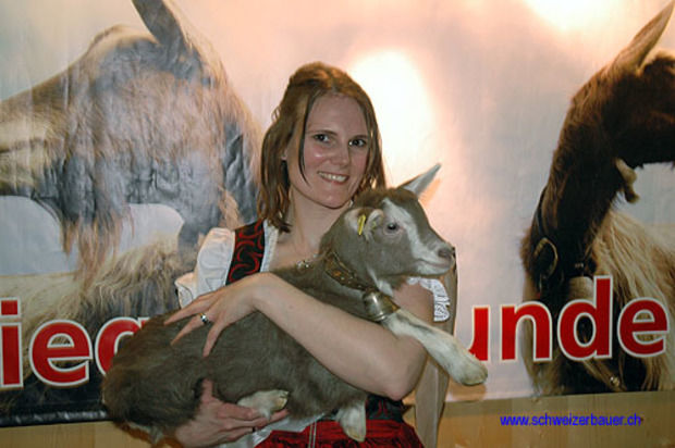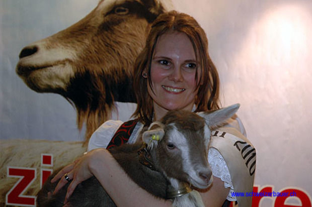 Die neue Geisskönigin Rebekka Valenta mit einem Toggenburger-Gitzi.