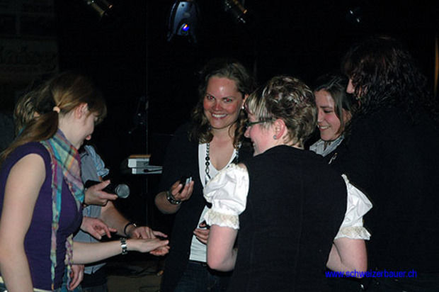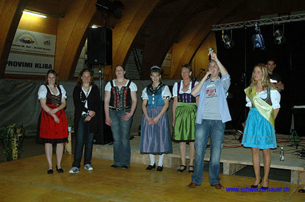 Spannung bei den Kandidatinnen, dem Moderator und der abtretenden Geisskönigin.