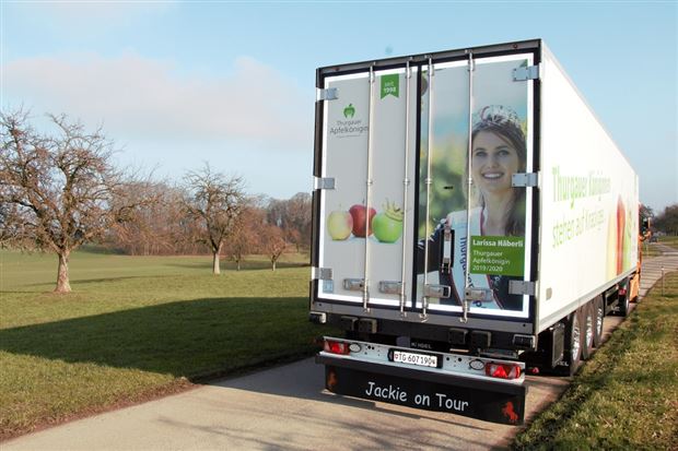 Der Früchtelieferant mit Hauptsitz in Bischofszell ist ein wichtiger Partner für die zahlreichen Thurgauer Obstproduzenten und auch seit Beginn bei der Thurgauer Apfelkönigin mit dabei. «Es freut uns sehr, dass wir mit dieser Aktion die Thurgauer Apfelkönigin in der ganzen Schweiz bekannter machen können», sagt Nadja Anderes, Geschäftsführerin Thurgauer Apfelkönigin. «Es ist zwar noch ein ungewohntes Gefühl, mich so gross auf einem Lastwagen zu sehen, aber ich bin gespannt auf die Bilder», meint Larissa Häberli, Thurgauer Apfelkönigin 2019/2020.