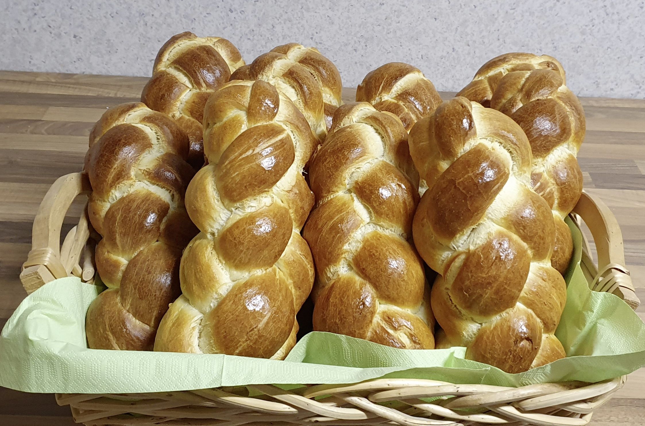 Den Teig, bestehend aus Mehl, Salz, weicher Butter, Hefe und lauwarmer Milch, kneten und schlagen. Danach ruhen – und aufgehen lassen, bevor der Teig zu Strängen geformt und zu Zöpfen geflochten wird. Noch rasch die schönen Teiglinge gefühlvoll mit Ei bestreichen und ab in den Ofen. Kurz nach dem Einschieben in den Backofen verbreitet sich ein unvergleichlich feiner Duft in der Küche.
