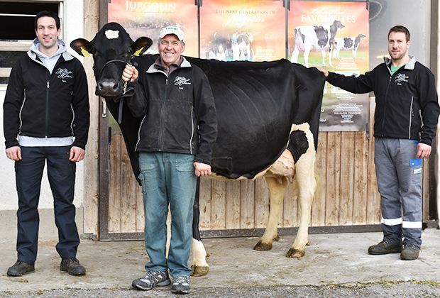 Weiter Corina und Cortina, beide EX 94, gesplittet aus einem Embryo. Vollbruder ist Colin, lange Zeit Spitzenreiter unter der Schweizer Stieren bei Swissgenetics. Rund die Hälfte des Bestandes geht auf Golinda zurück. «Jurgolin hat insgsamt 165 Embryonen produziert und Nachkommen in ganz Europa. Viele stehen nicht in Schaubetrieben. Deshalb habe ich nicht mehr alle im Blickfeld», so Thomas. Die Geschichte ist noch lange nicht zu Ende: Aktuell sind vier Generationen in Milch.