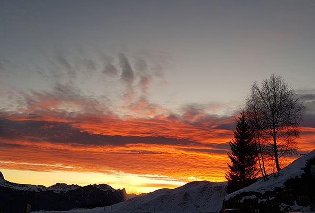 Bei Tagesanbruch kann sich der Himmel in den faszinierendsten Rot-Gold-Gelb-Farbtönen zeigen oder sich sogar in ein flammendes Naturspektakel verwandeln.
