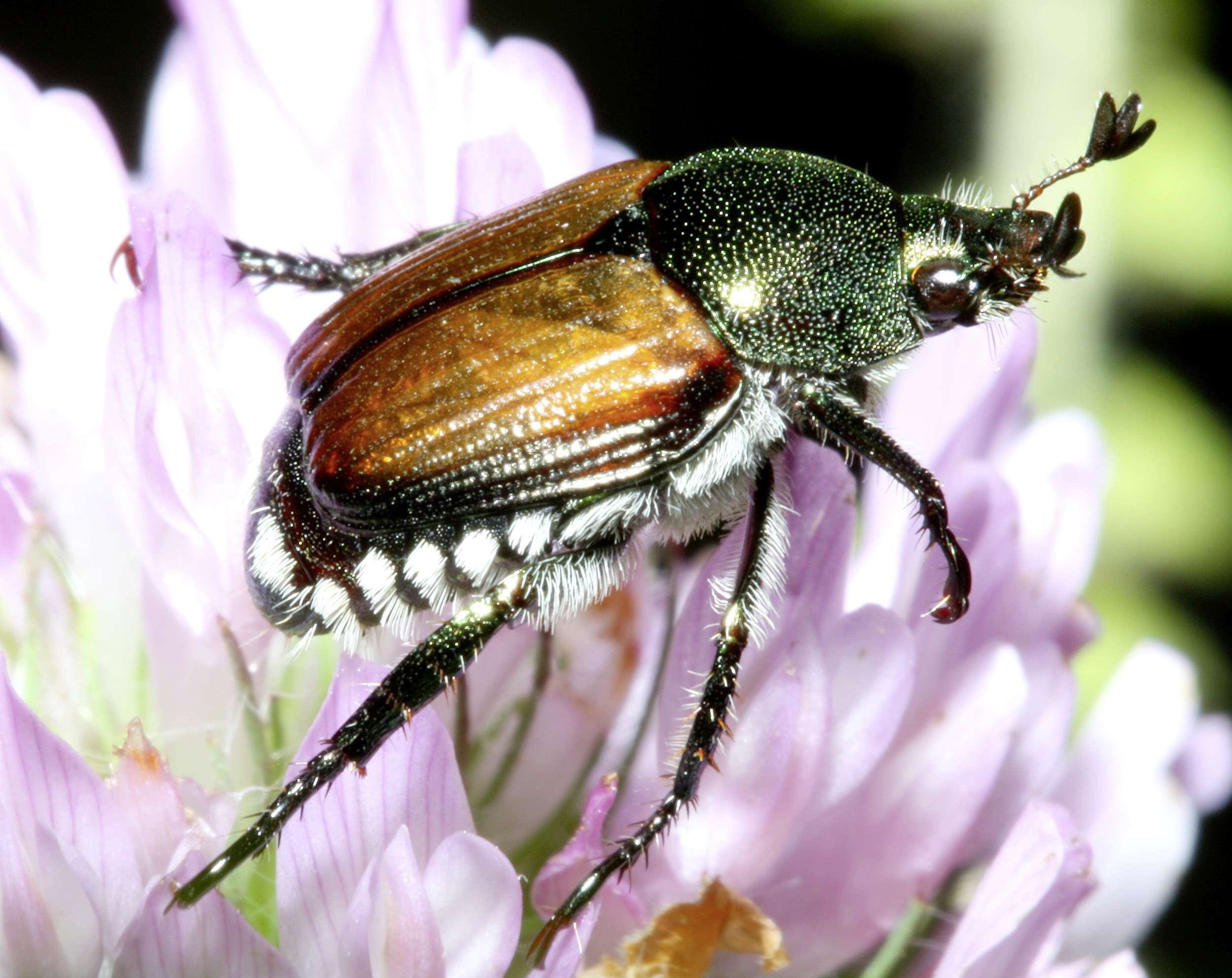 Während die Larven Wurzeln schädigen, fressen adulte Japankäfer oberirische Pflanzenteile