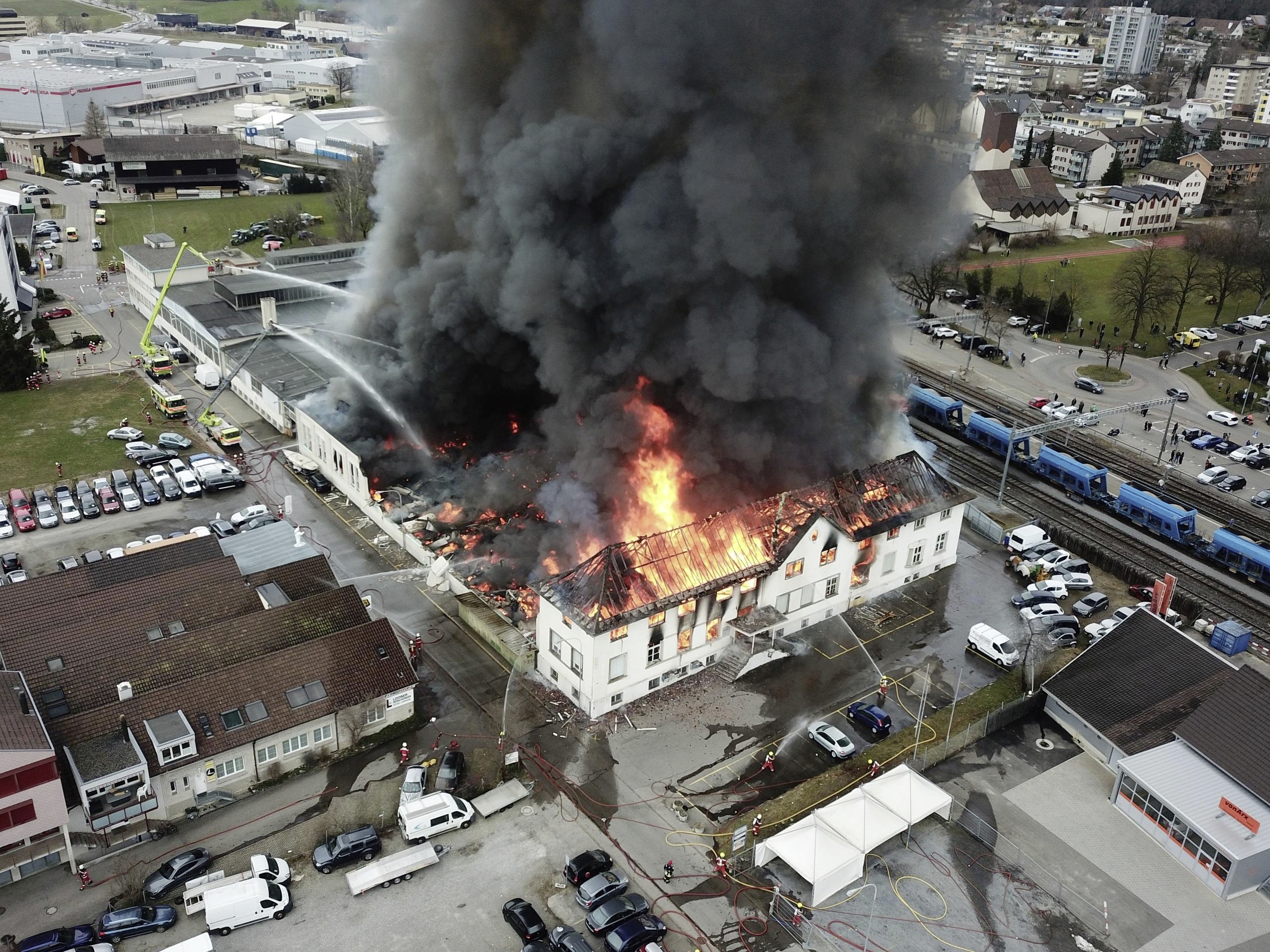 Alle beim Brandausbruch sich im Gebäude befindenden Personen konnten nach derzeitigem Ermittlungsstand das Gebäude noch vor Eintreffen der Rettungskräfte unverletzt verlassen, teilte die Kantonspolizei am Abend mit. Wegen akuter Einsturzgefahr hätten die Einsatzkräfte noch nicht ins Gebäudeinnere vorstossen können.