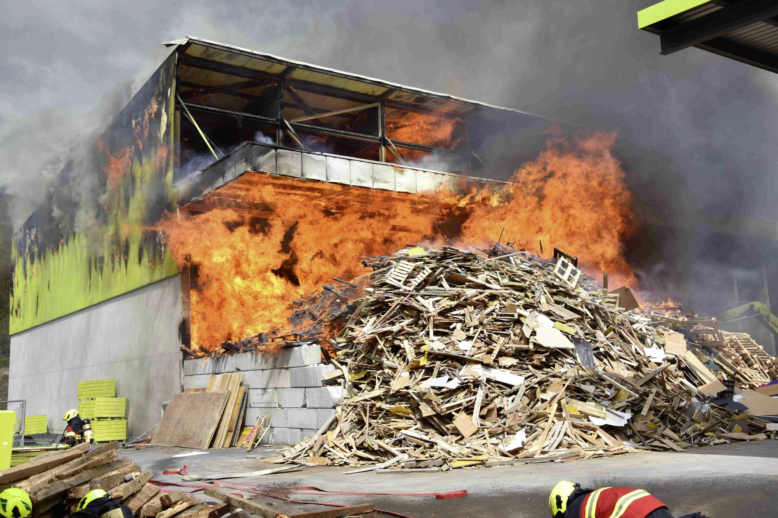 Obwohl zum Zeitpunkt des Brandausbruchs entweder in oder um die Halle herum gearbeitet worden sei, hätten sie niemanden evakuieren müssen. In der Halle seien Altholz, Sperrgut, Papier und Karton gelagert gewesen.