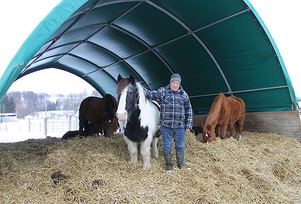 Für die kleineren Gruppen stehen Folientunnels, Iglus (für die Ponys), Holzunterstände, befestigte Ausläufe und ebenfalls grosszügige Weiden zur Verfügung. «Wir haben vieles selber gebaut und heute leben rund 50 Pferde, Ponys und Maultiere auf dem Hof», sagt Schumacher.