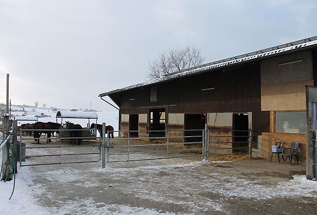 Der Arbeitsaufwand im Boxenstall sei sehr hoch. Zudem entspräche die Gruppenhaltung mit viel Bewegungsmöglichkeiten im Laufstall viel mehr einer natürlichen Pferdehaltung. So wurden der neue 6er-Boxenstall und auch der alte Mutterkuhstall umgebaut und in zwei grosse Gruppen-Laufställe umfunktioniert.