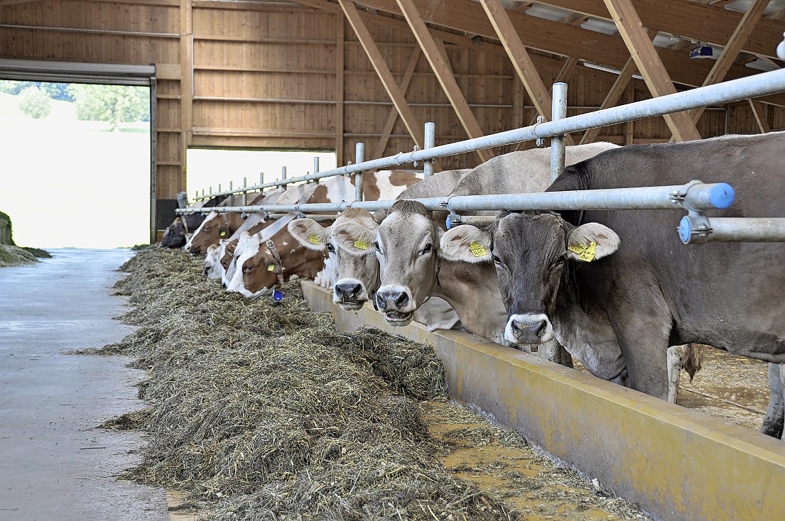 Das Bundesprogramm zur Graslandbasierten Milch- und Fleischproduktion (GMF) ist nun bereits seit sechs Jahren am Laufen. Im Zentrum steht eine standortangepasste Fütterung der Wiederkäuer, wobei je nach Standort auch Mais eine gute Futtergrundlage bietet. Um den GMF-Beitrag von 200 Franken je ha Dauergrünflächen und Kunstwiesen zu erhalten, muss die Jahresration aller auf dem Betrieb gehaltenen raufutterverzehrenden Nutztiere zu 90 Prozent aus Grundfutter bestehen. Im Talgebiet müssen 75 und im Berggebiet 85 Prozent der Trockensubstanz (TS) aus Wiesen-oder Weidefutter bestehen.
