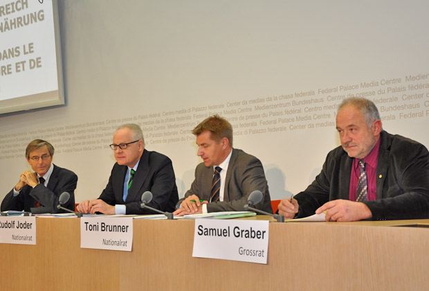 Die Gruppe um Nationalrat Rudolf Joder (SVP/BE) und Kälbermäster Samuel