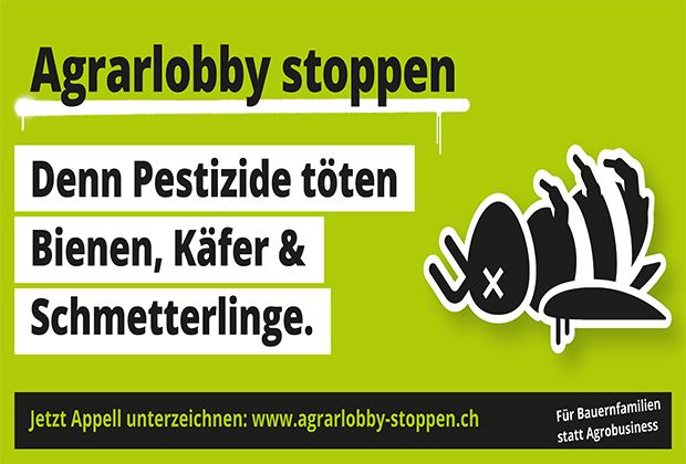 Die Kritik an Agrobusiness und Agrarlobby fällt heftig aus. «Die mächtige Agrarlobby gibt vor, für die Schweizer Bauernfamilien einzustehen. In Tat und Wahrheit stützt sie eine industrielle Landwirtschaft, die den Interessen des Agrobusiness dient. Diese auf Hochleistung getrimmte Landwirtschaft tötet Vögel und Insekten und vergiftet unsere Gewässer und Lebensmittel mit Pestiziden», steht auf der Website. Mit der Kampagne soll dieses System gestoppt werden.