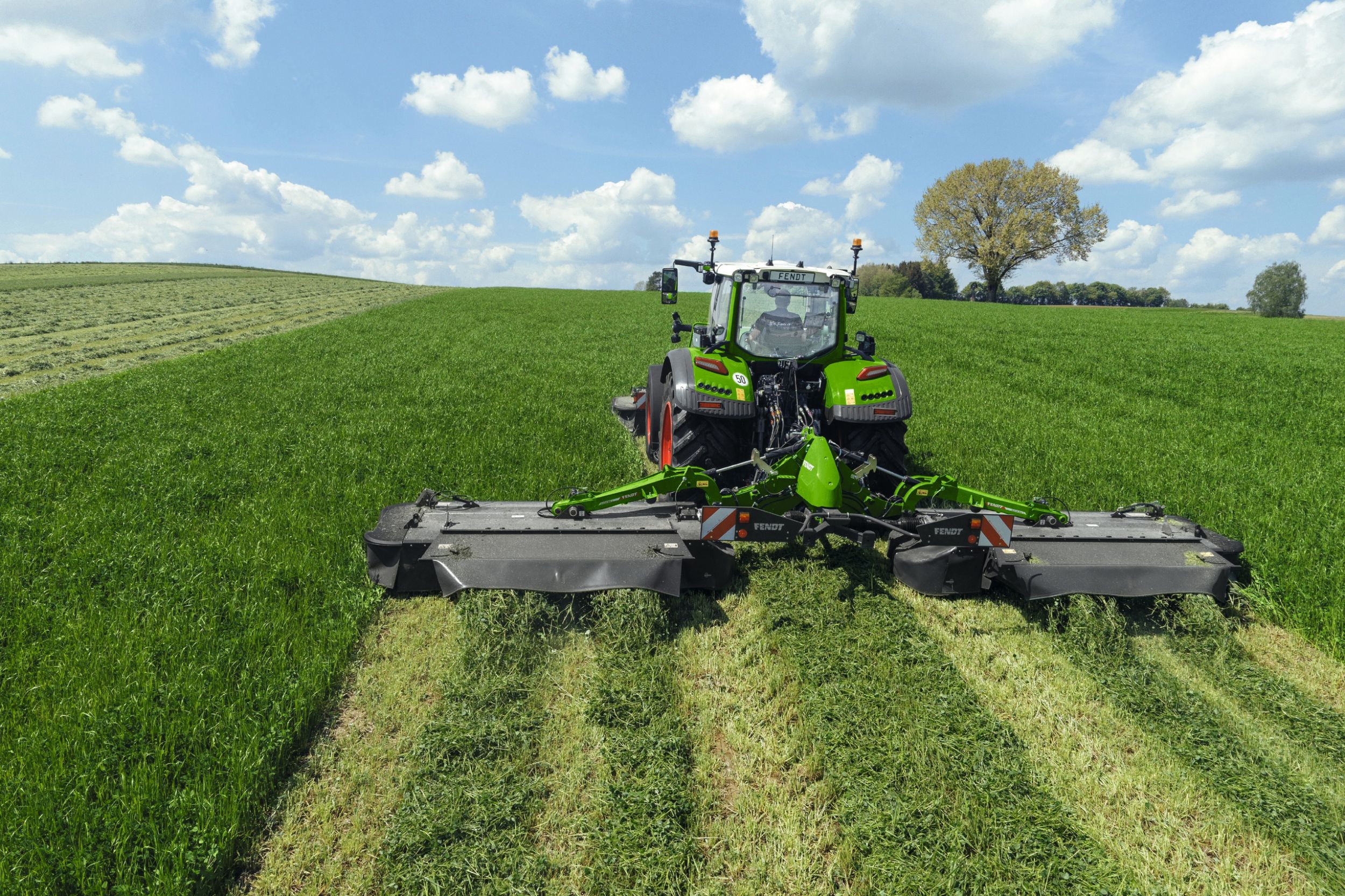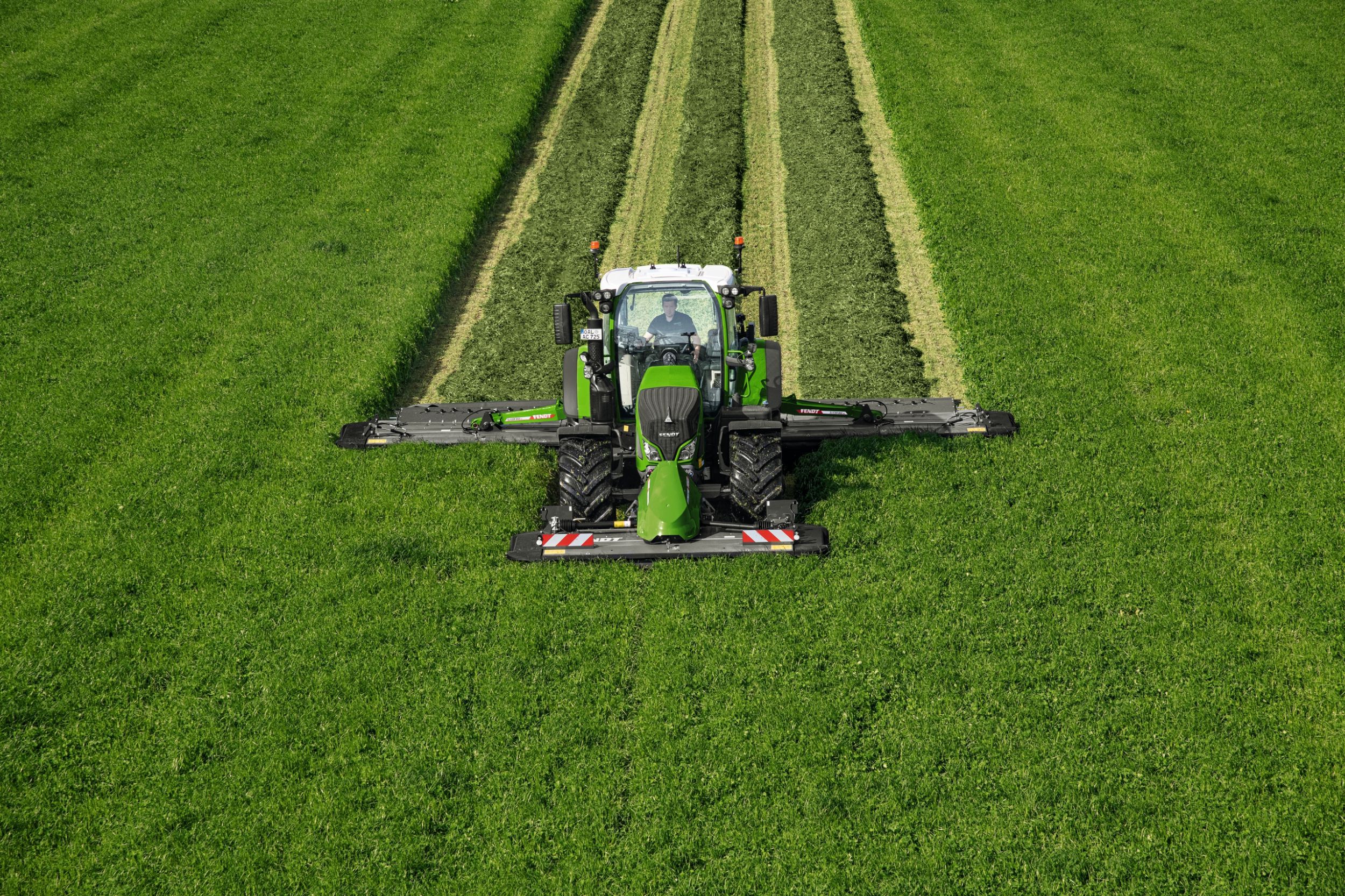 Für Landwirte mit Grossflächen bietet Fendt eine neue Baureihe der Fendt Slicer als Mähkombinationen an. Die Baureihe wird um zwei leichtzügige Schmetterlingsmähwerke mit verschiedenen Aufbereitern erweitert. Technische Neuerungen sind ein neu entwickelter Mähbalken, ein neuer Eco Modus und der Antrieb für den Rollenaufbereiter.