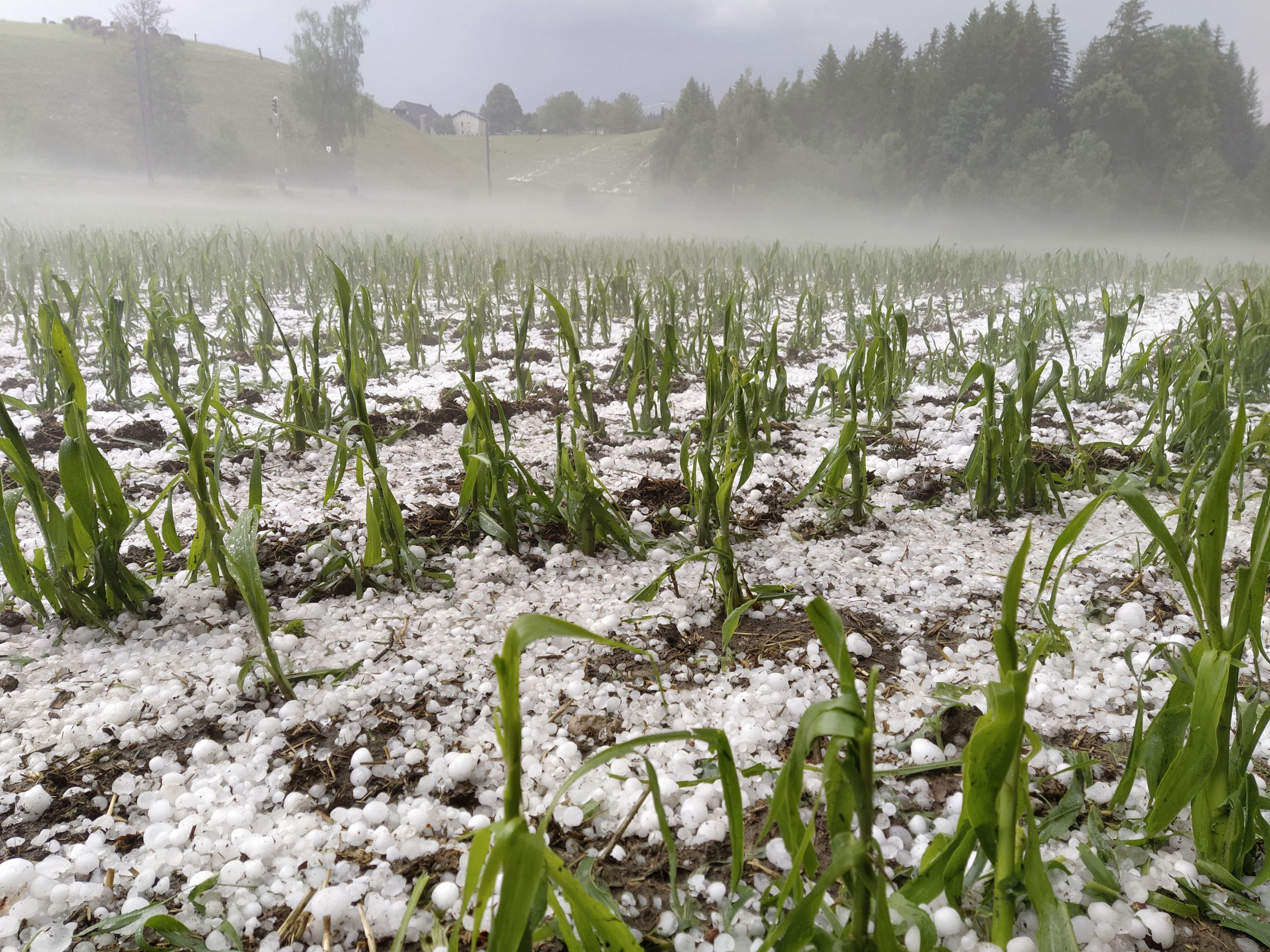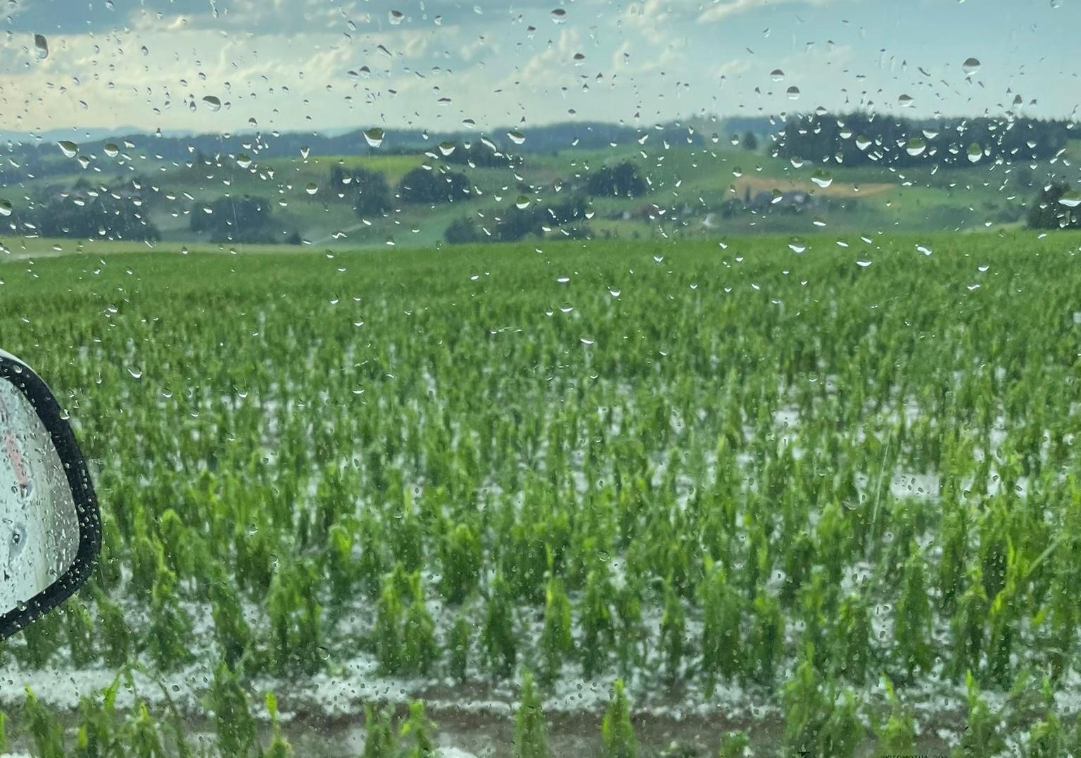 Der Hagel in den landwirtschaftlichen Kulturen massive Schäden verursacht, wie Leserbilder zeigen. Kartoffel- und Mais wurde von den Hagelkörnern zu Boden gedrückt oder zerschlagen.