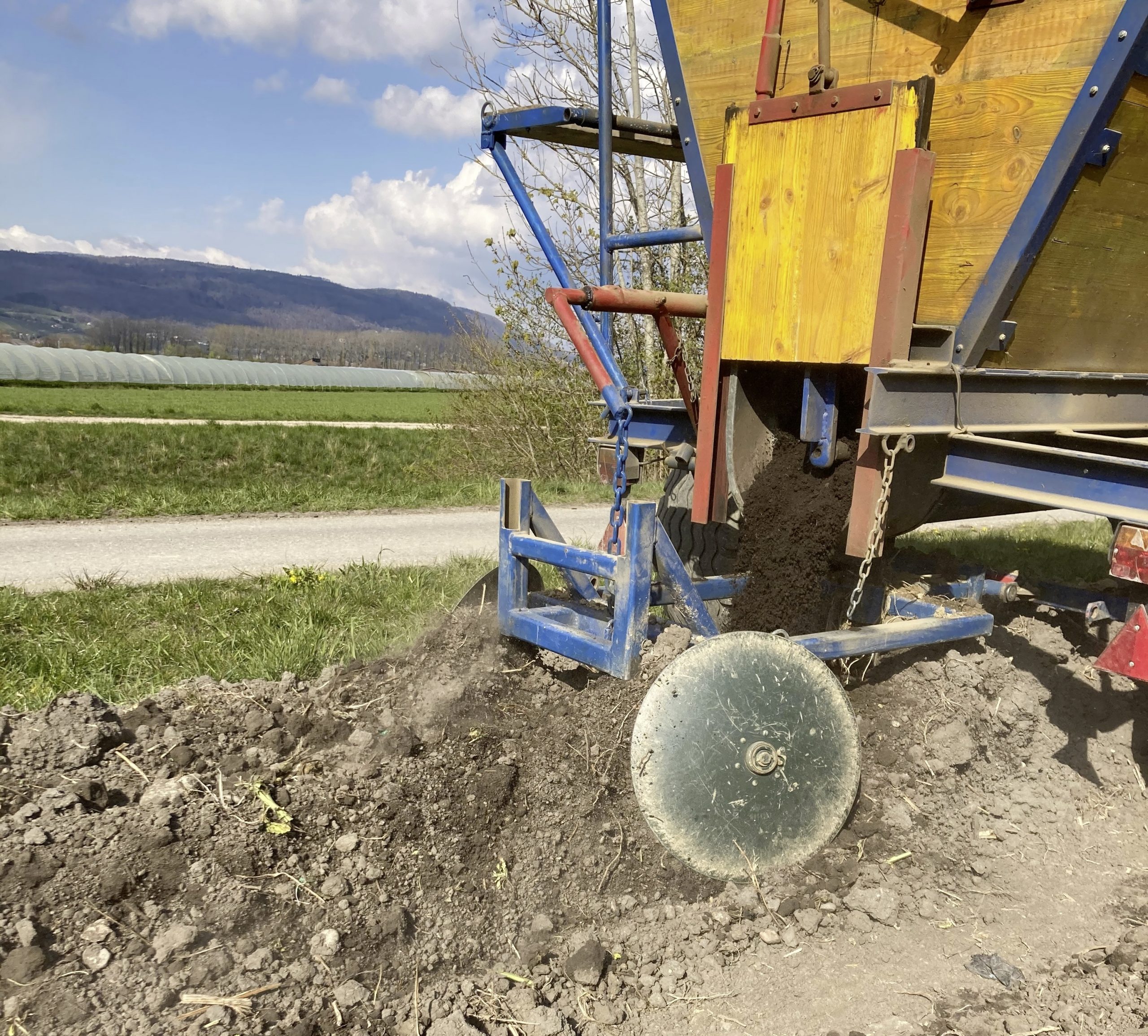 Beim Anlegen von neuen Erdbeerdämmen mischt Patrik Niederhauser jeweils nährstoffreiche Schwarzerde mit einem speziellen Karren direkt unter die Erddämme: «Damit erhalten wir einen gesunden Boden, der mehr Wasser speichern kann. Und je gesünder der Boden ist, desto weniger Krankheiten hat er und desto gesünder ist dann auch die Pflanze, die obendrein mehr CO2 im Boden einbinden kann.»