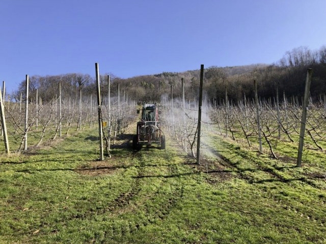 Auf ein anderes Naturproduktmittel setzt der Betrieb von Ralph Kellerhals im baselländischen Füllinsdorf: Dort kommt nicht Komposttee in den Spritztank, sondern eine Kalklösung. Der in Wasser gelöste sogenannte Fruchtkalk hat einen hohen PH-Wert von 12,6 und wird entweder per Boden- oder Blattapplikation ausgebracht.