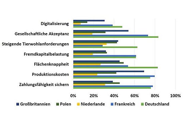Hohe Produktionskosten, die Sicherung der Zahlungsfähigkeit und die gesellschaftliche Akzeptanz stellen für die meisten Landwirte in Deutschland und Frankreich die grössten Herausforderungen für die Zukunft dar.