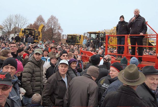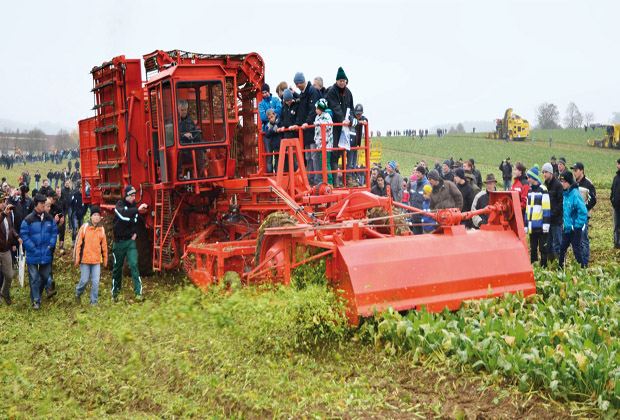 Wenn Ropa an die Hausmesse nach Sittelsdorf ruft, dann kommen die Besucher in Massen. Neben Neuheiten zeigte der Rübenermtetechnik-Spezialist auch den ersten Rübenroder aus dem Jahr 1972 im Einsatz. Gefahren vom Chef höchstpersönlich.