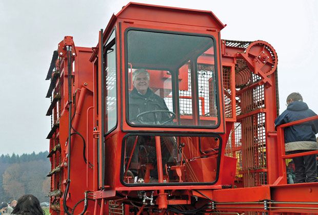 Als besonderes Highlight hat an der Hausmesse Firmengründer Hermann Paintner mit seinem ersten selbst gebauten Rübenroder aus dem Jahr 1972 im Feldeinsatz Zuckerrüben geerntet.