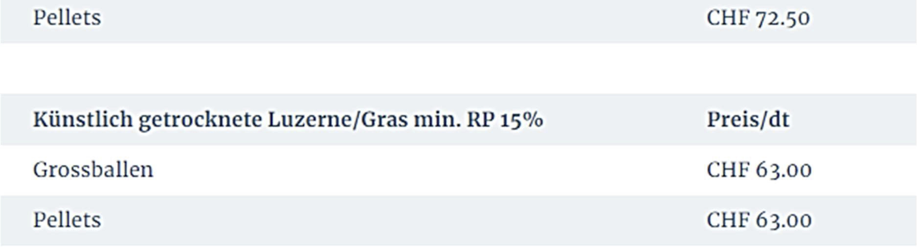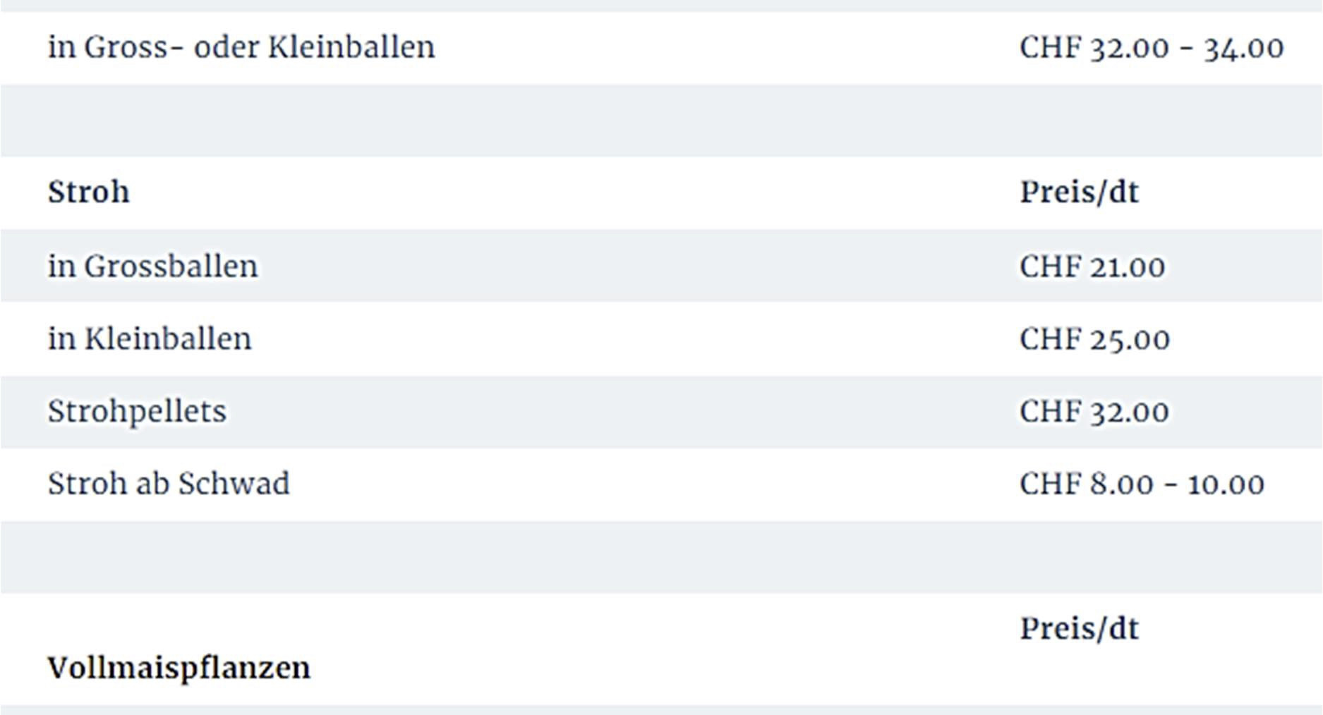 Eine andere Marktsituation zeigt sich bei den Proteinträgern. Diese sind wegen der neuen «Schweiz Regel» sehr gefragt. Die Preise sind bis zu 3 Franken gestiegen. Eine Neuerung gibt es beim Stroh. Für Stroh ab Schwad wurde ein Richtpreis definiert. Die Richtpreise dienen als Orientierungshilfe und Verhandlungsbasis zwischen Kaufenden und Verkaufenden.