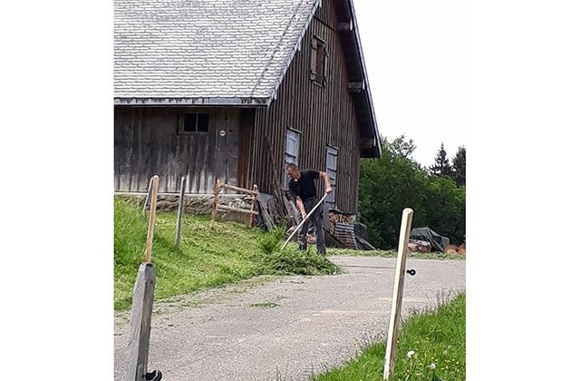 Bei Markus Keller aus Siblingen SH werden noch kleine Heuballen gemacht. Von Hand muss er sie aber nicht mehr laden, dafür kommt der Ballensammelwagen Kemper zum Einsatz. Im Kanton Zürich, genauer in Wiesendangen, werden die Rundballen noch mit einer kleinen Presse gemacht. Fotograf Gody Suter schreibt uns dazu Folgendes: Die in die Jahre gekommene Rundballenpresse läuft immer noch einwandfrei.
